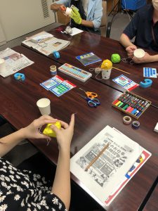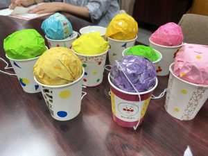 手遊びの後は、暑い夏にぴったりなアイスクリームのけん玉作りです。