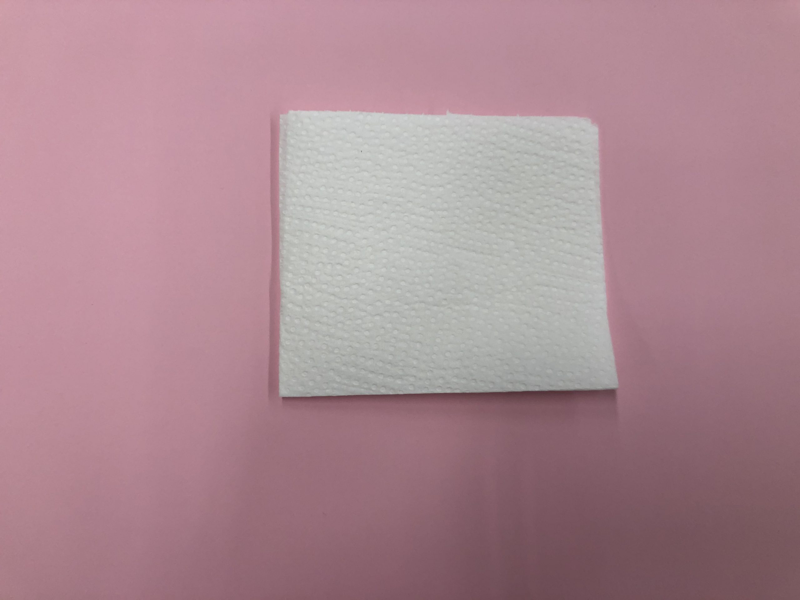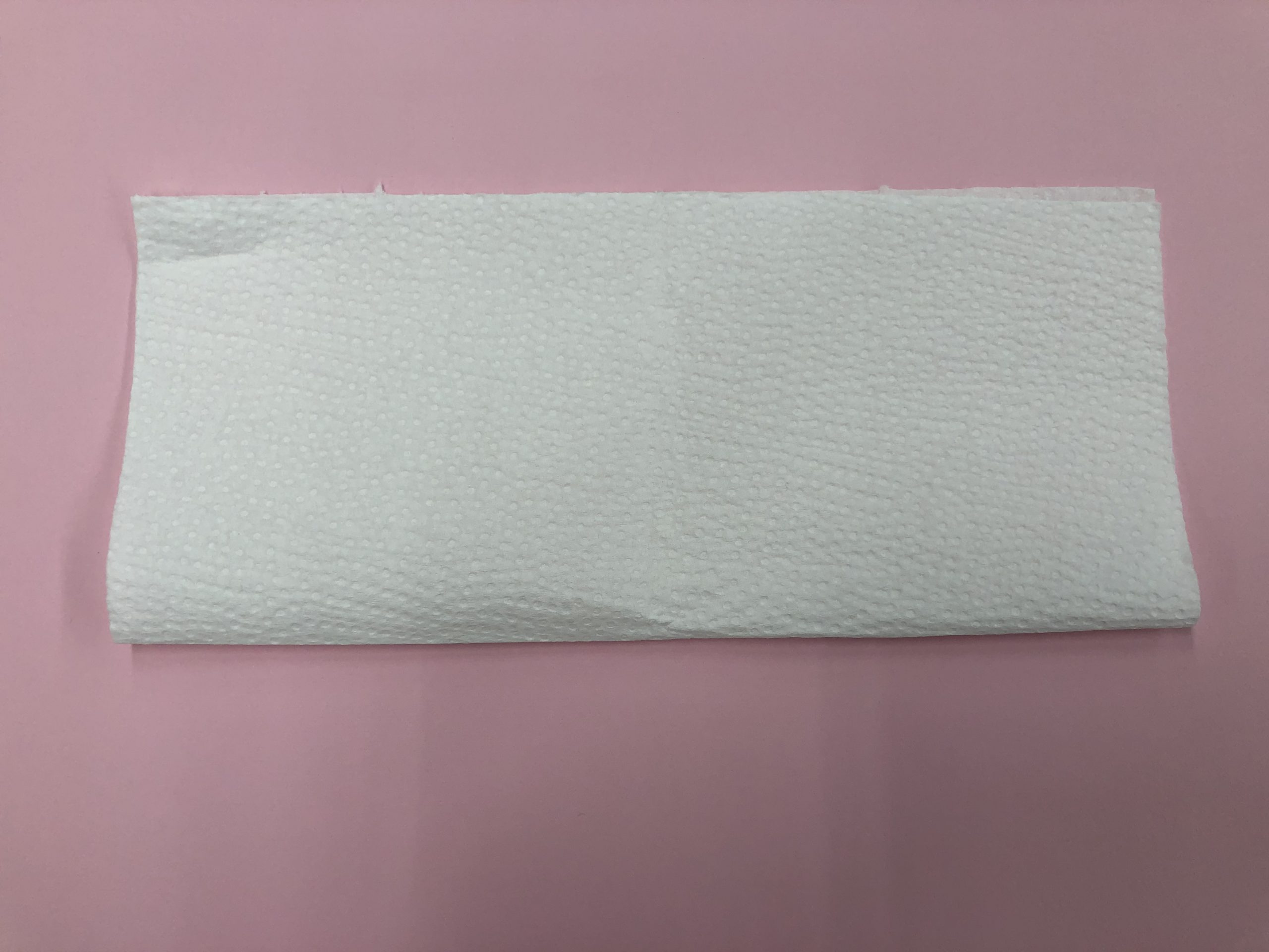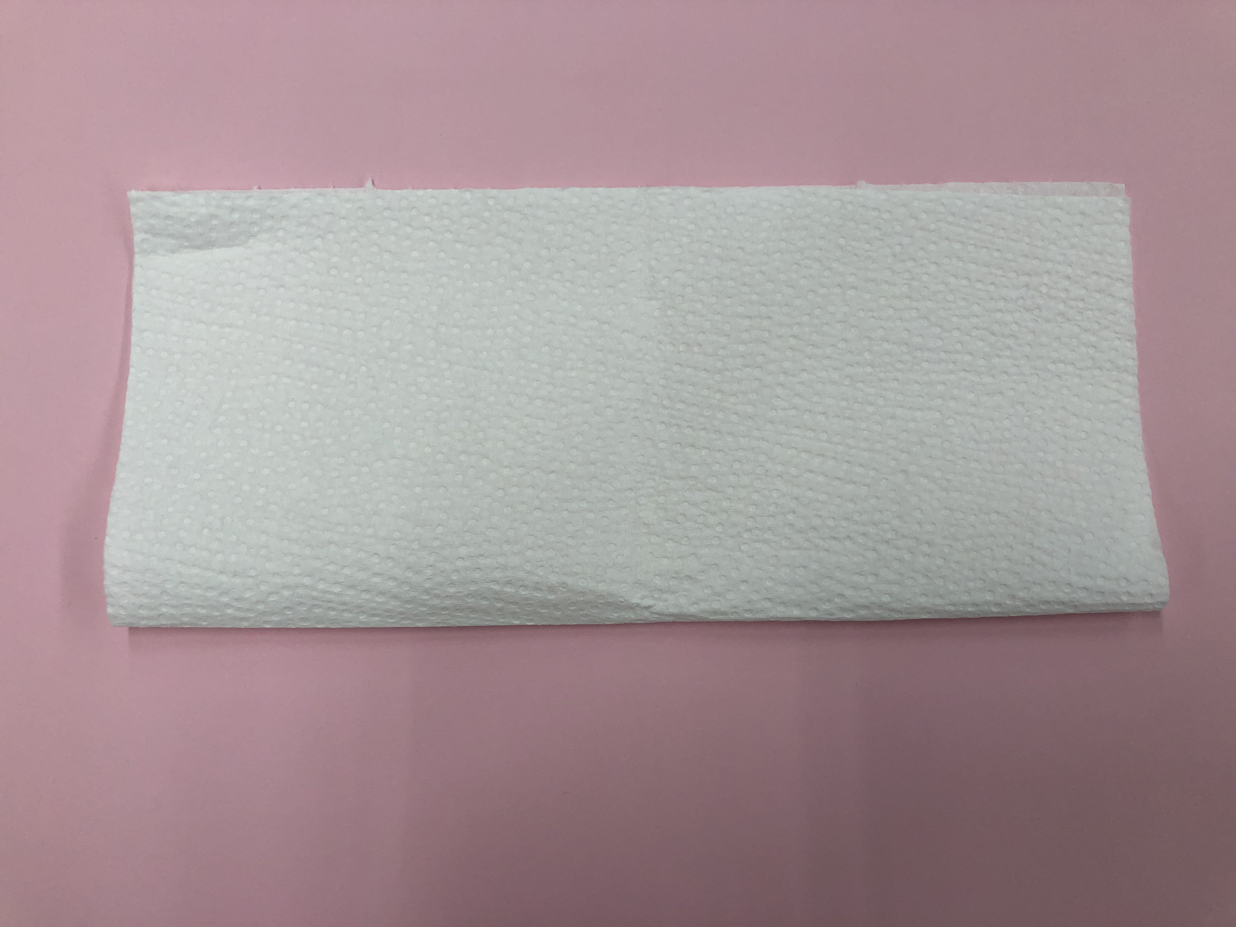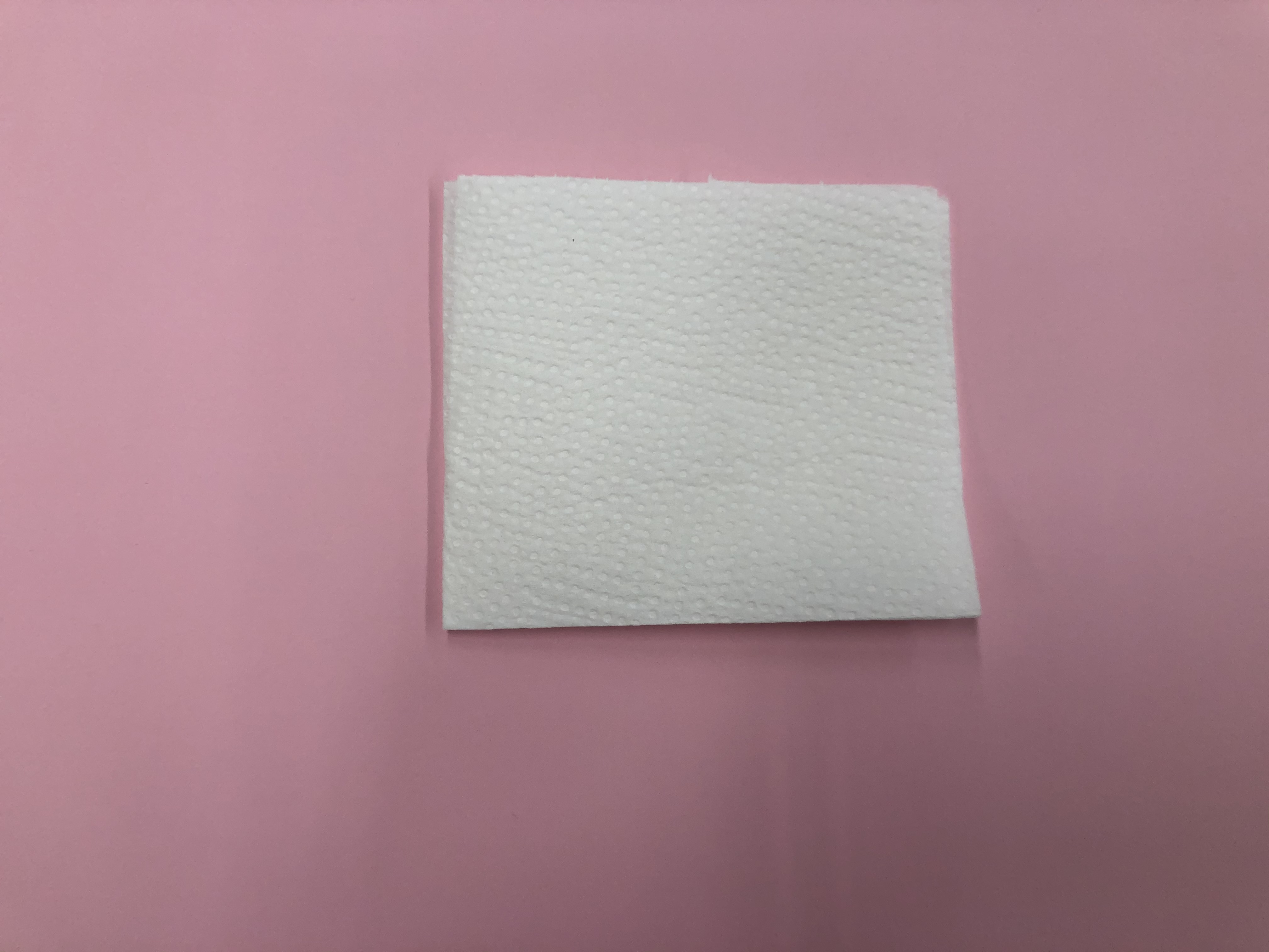 ②好きな色の絵具を水に溶かし、折ったキッチンペーパーにつけてにじませます。(複数色にじませても楽しめますよ。)