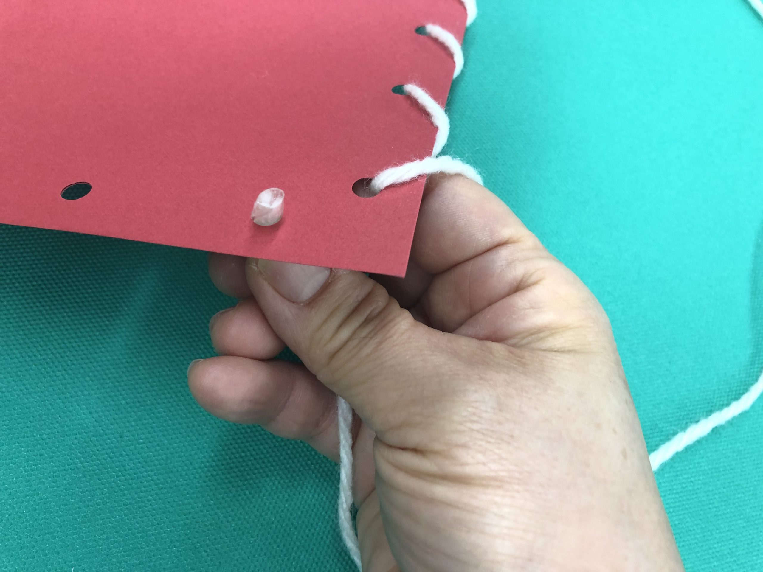 毛糸の先が割れると通りにくいので、セロハンテープで巻いておくと通しやすいです。