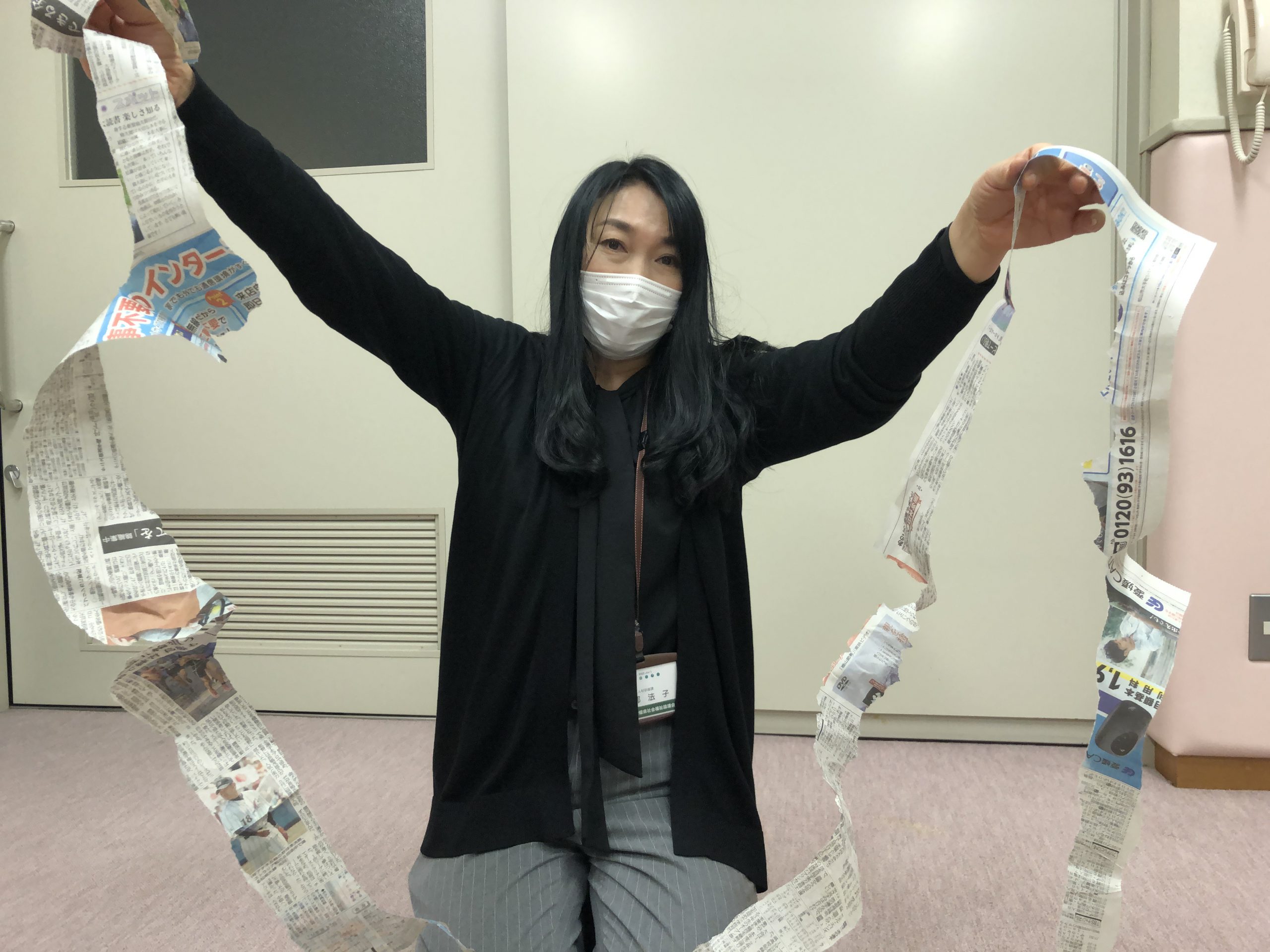 よーいどんの合図で1枚の新聞紙をながーくながーくちぎってみよう。