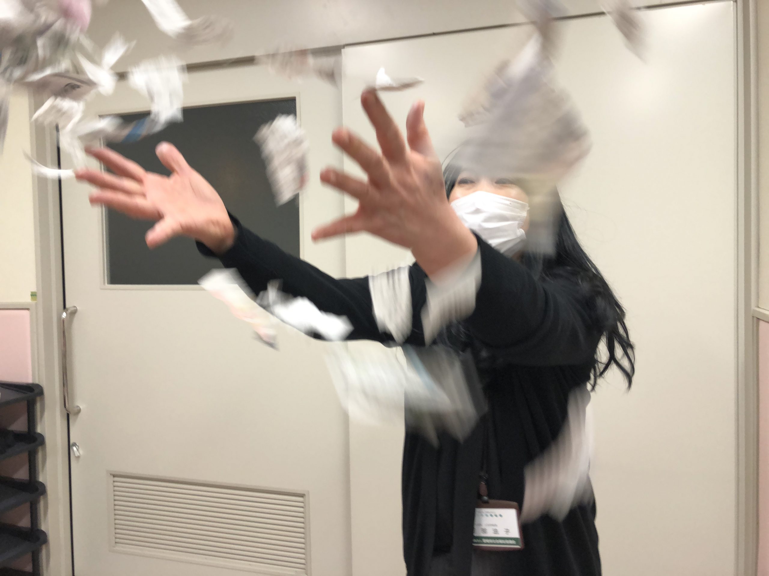 たくさんちぎって上に投げて雪がひらひら落ちてくる感覚を楽しもう。