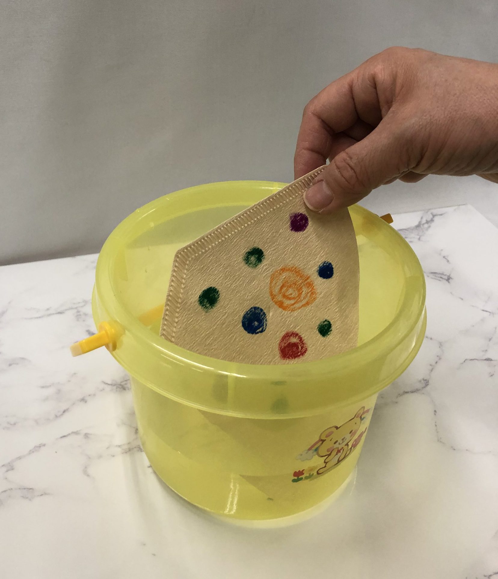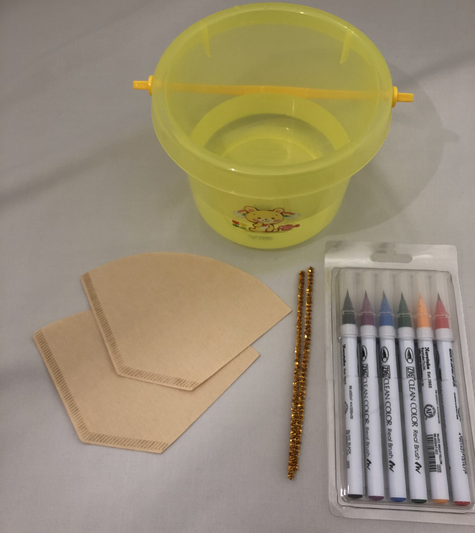 今回は、バケツに入れた水でにじみ絵を制作しますが、霧吹きを使うことで、未満児さんも楽しめますよ(*^▽^*)