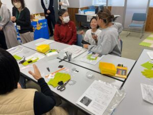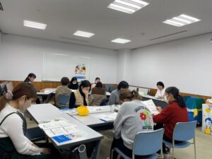 と手際よくフェルトを切り進める現役保育士さん…いろいろな立場の方が集まり、活発に情報交換が行われていました⭐️