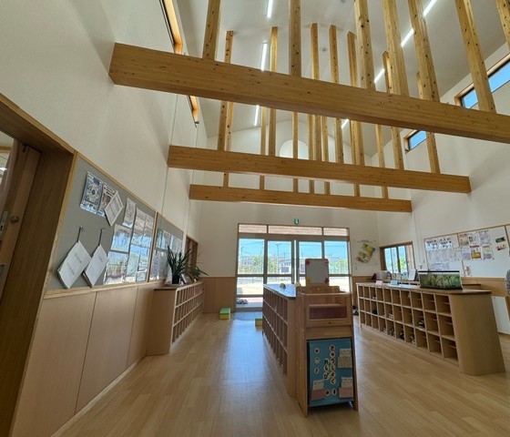 テラスで水遊びもできて、すぐにお部屋にも入れるけん、保育士も気軽に水遊びや外遊びができそうやったわい。
