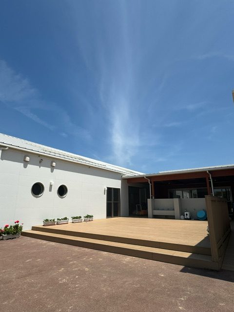 園の外観は青い空が似合う白色!