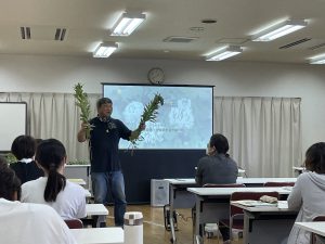 講演の中では実際に身の回りに生えている植物を使い、それぞれの特性を説明していただきました。