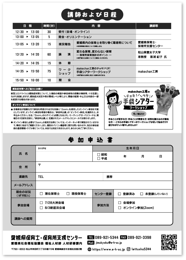 主 催 | 愛媛県社会福祉協議会(愛媛県保育士・保育所支援センター) |