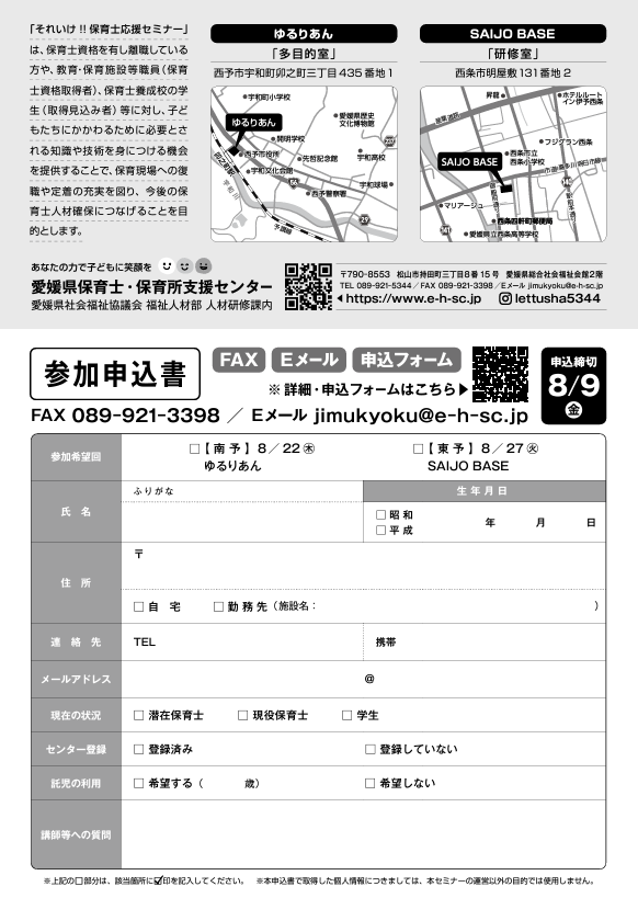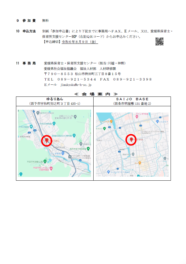 開催場所 | SAIJO BASE「研修室」(西条市明屋敷131番地2) |