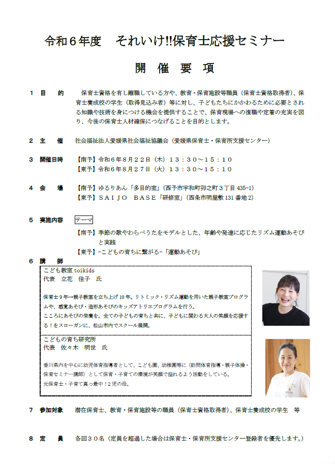 〇南予会場 「季節の歌やわらべうたをモデルとした、年齢や発達に応じたリズム運動あそびと実践」