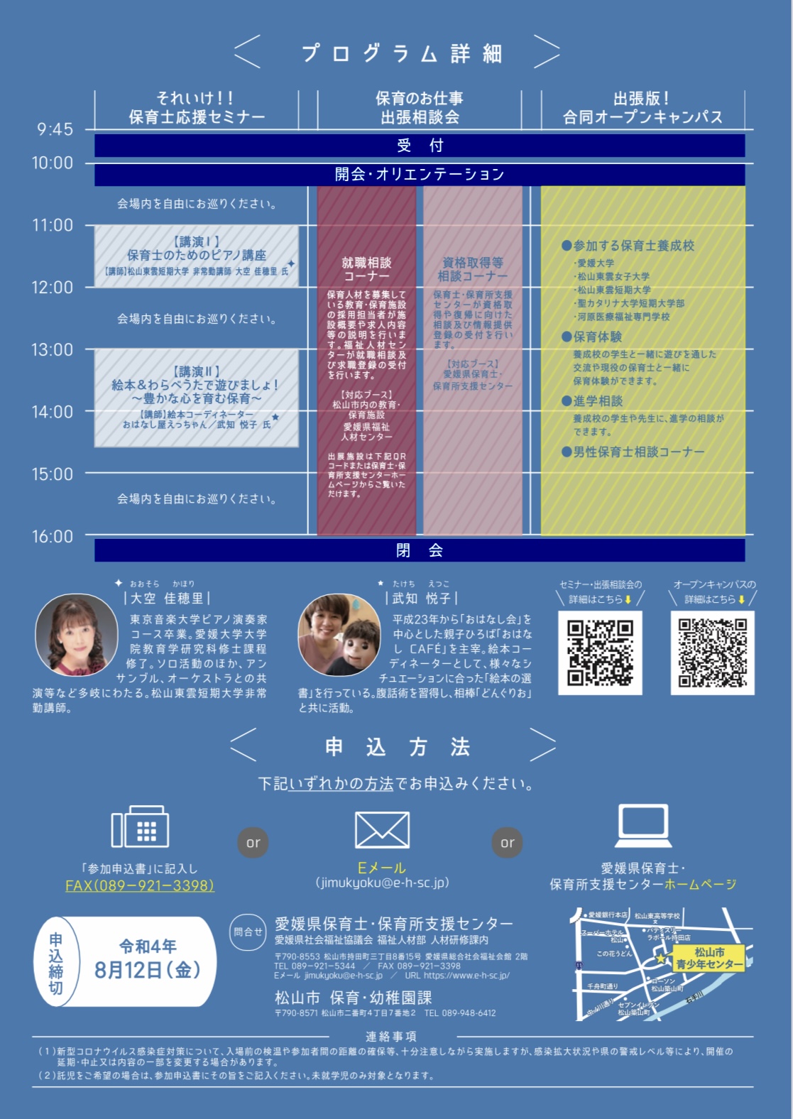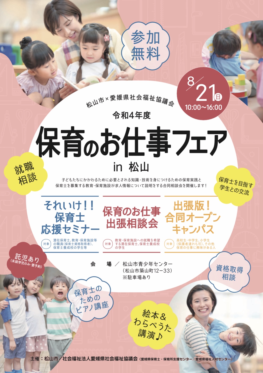 「保育のお仕事フェアin松山」と題したイベントを8月21日(日)に松山市と共催で開催します。