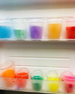 2日前から冷凍庫で洗濯のりスライムを凍らし、スタンバイです。