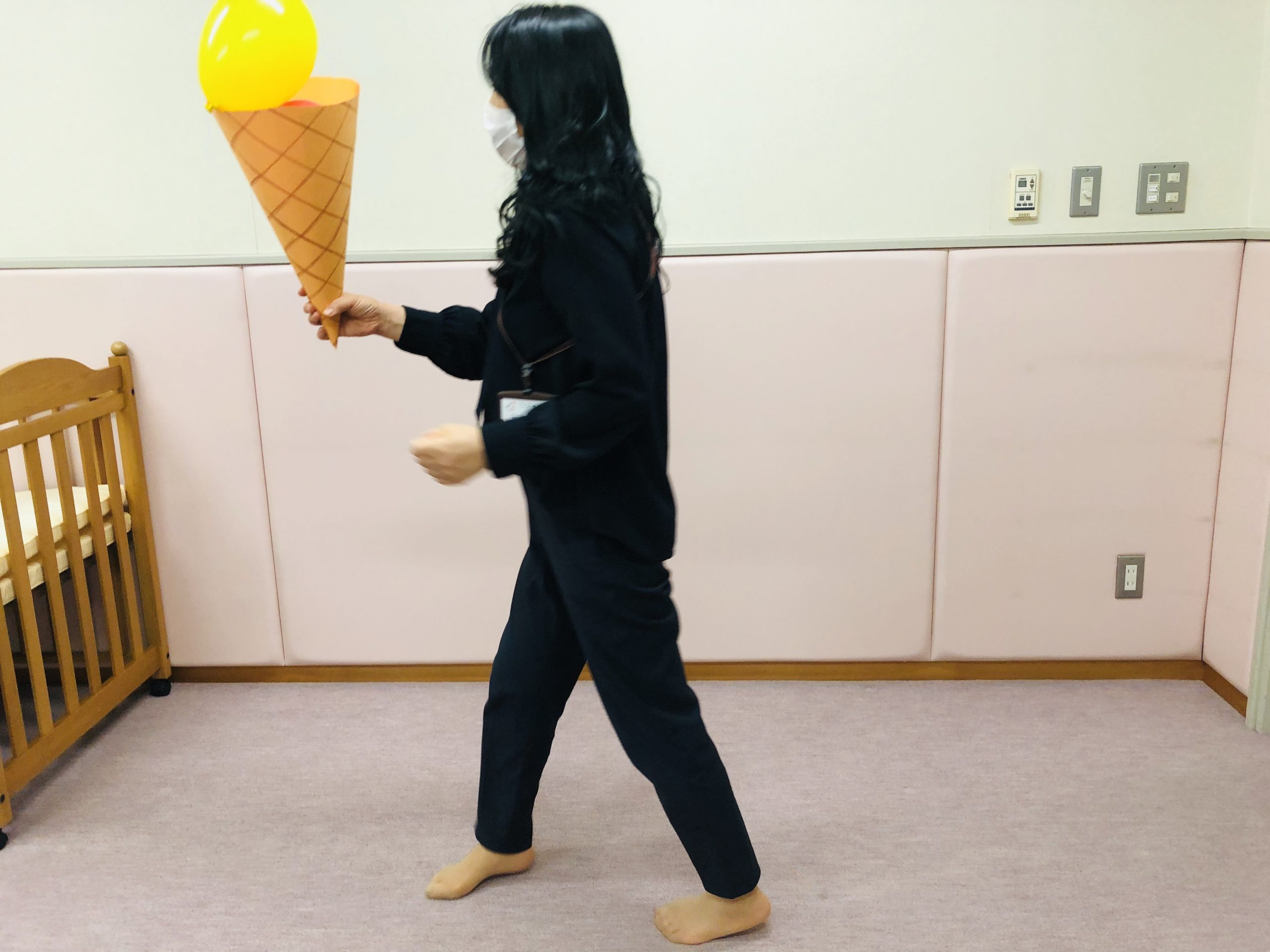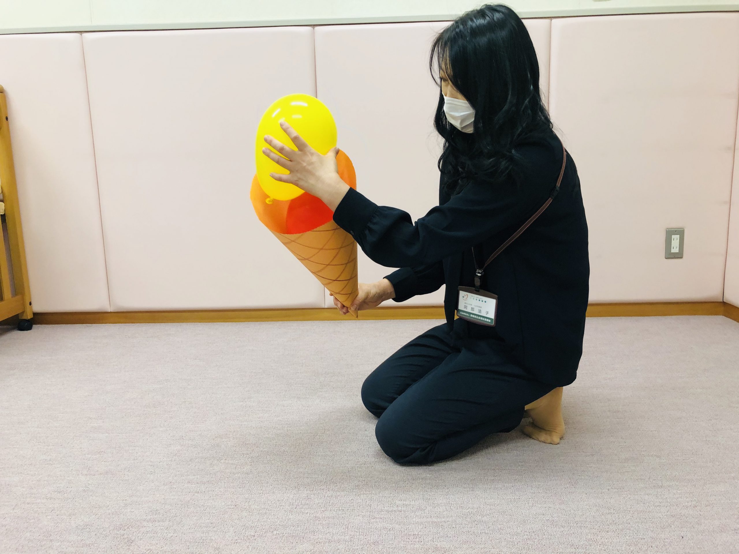 実際にやってみると、風船がふわふわして結構難しいです。コーンやカップの大きさを、風船が2個ピッタリは入らず、上に乗るような形で作ると難易度アップ!子どもたちも盛り上がること間違いなしです♪