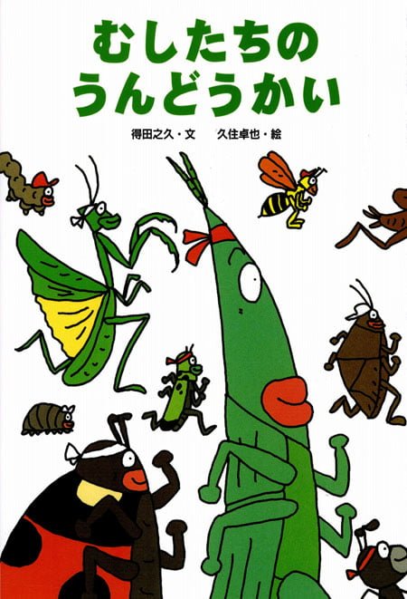 トノサマバッタにキリギリス、クワガタにカマキリ。林の広場で虫たちの運動会が始まりました。応援合戦では、秋の虫とセミたちが「ガチャガチャギッチョン」「ミーンミーン」など、さなざまな鳴き声で交戦します。はしりっこ競争では、それぞれの特徴を活かした走り方で一生懸命かけぬけます。とびっこ競争では、ギンヤンマやオニヤンマが大空を飛びまわり、玉入れではダンゴムシが玉になって参加です。とってもキュートな虫たちの表情も楽しみな絵本です。
