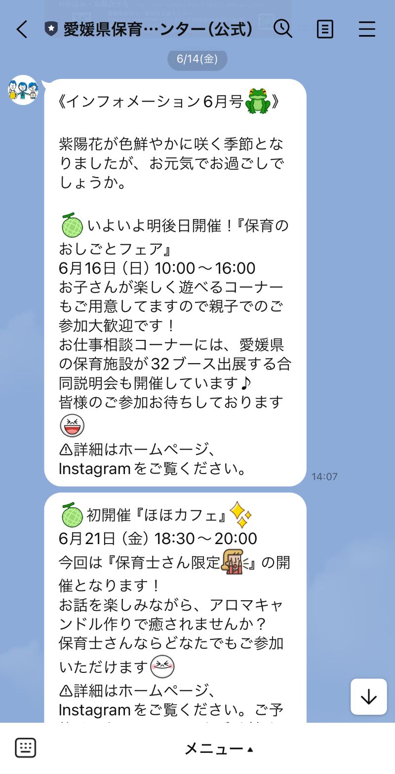 公式LINEでは、月に1回保・保センターのイベント情報を発信しています♪
