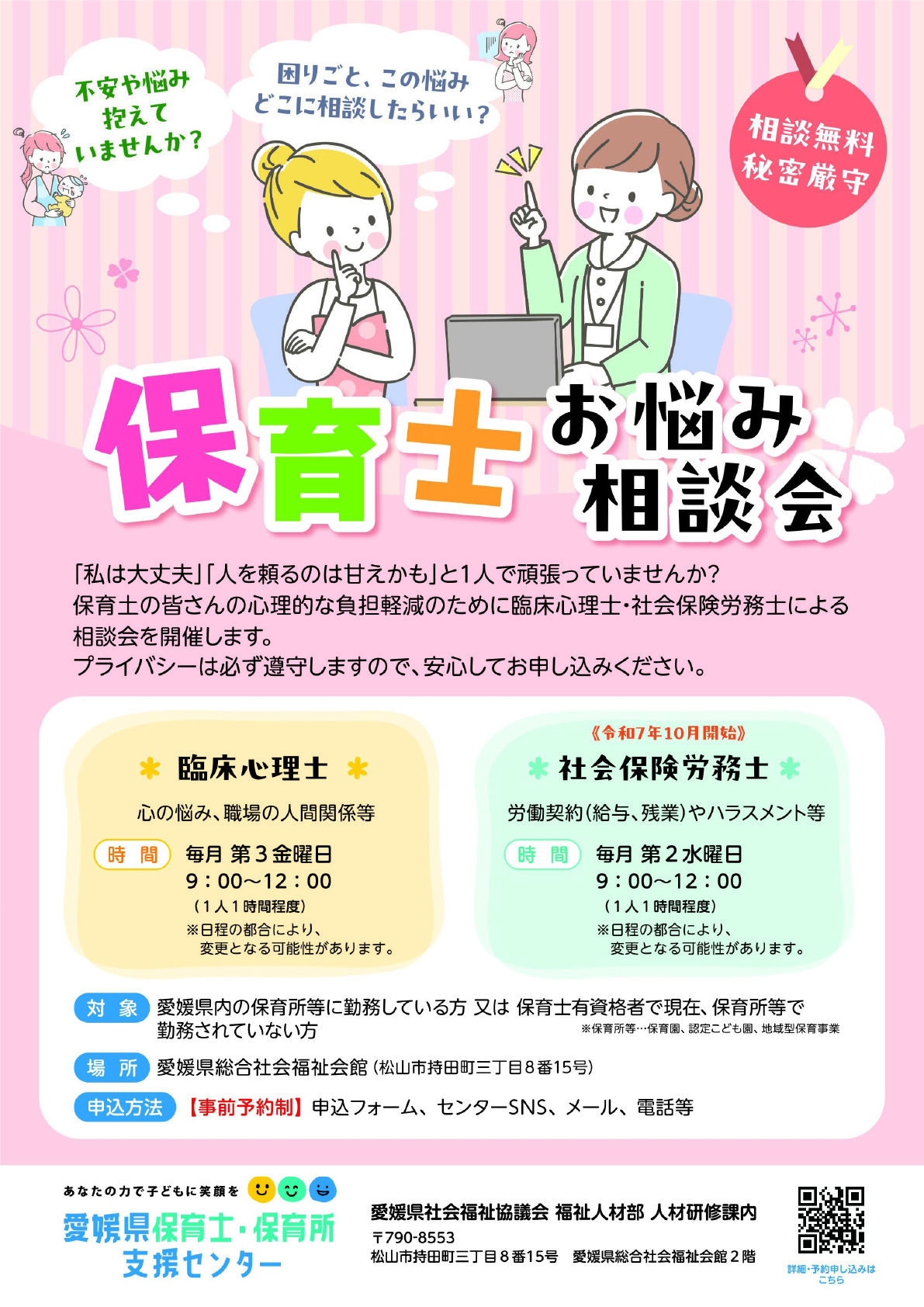 保育土の皆さんの心理的な負担軽減のために臨床心理士・社会保険労務士による相談会を開催します。