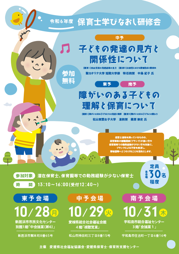 | 参加対象 | 潜在保育士、保育園等での勤務経験が少ない保育士 |